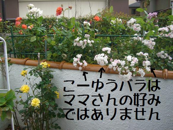 で、この子はすくすく伸びる、つるバラで、それもちんけな花がいっぱい。